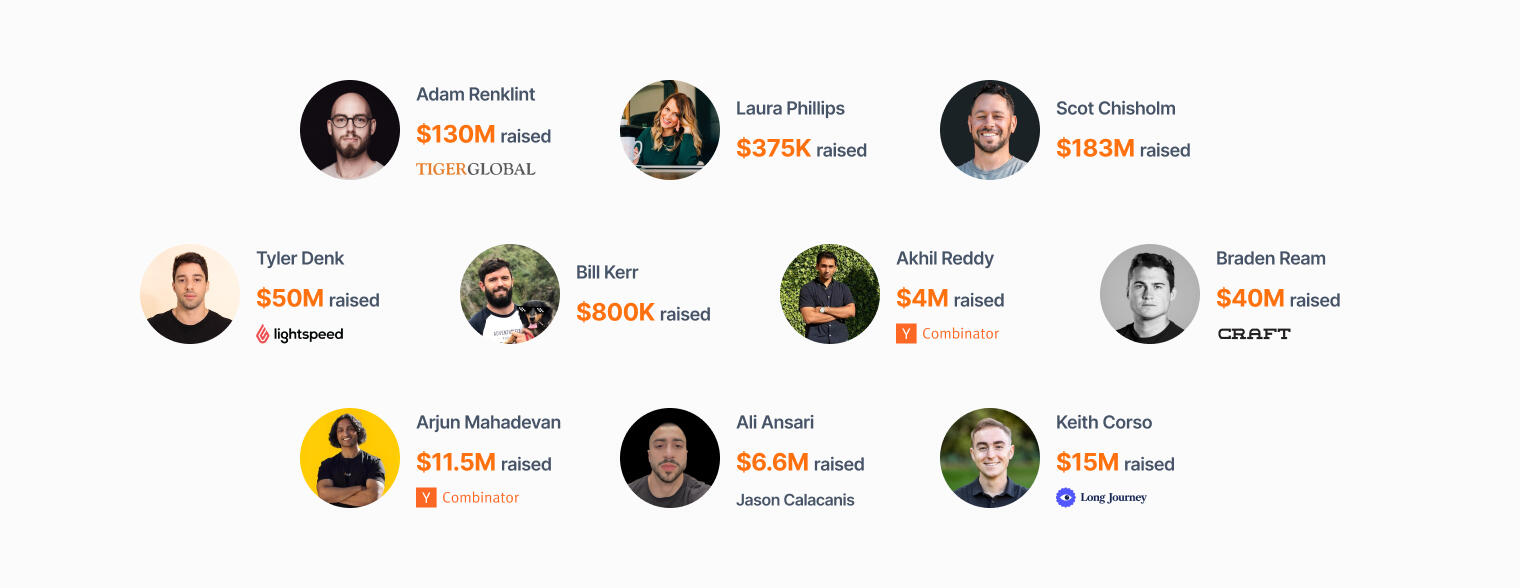 Connect and share stories with hundreds of founders who've collectively raised over $500 million.